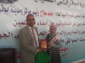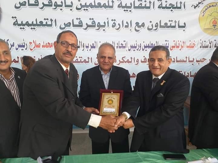 أبدى حامد الشريف نقيب المعلمين فخره و سعادته لهذا التكريم الرائع من تنظيم و ترتيب وحسن سير فقرات الحفل