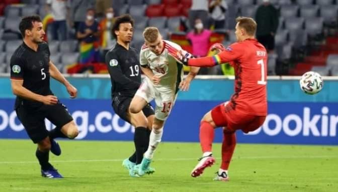 تأهل المنتخب الألماني بنجاح إلى ثمن النهائي لكأس الأمم الأوروبية "يورو 2020" بعد تعادله المثير مع المجر في دور المجموعات من بطولة كأس الأمم الأوروبية "يورو 2020". وفي المباراة ، سجل المنتخب المجري أولاً عن طريق آدم سالي في الدقيقة 11 ، وتعادل المنتخب الألماني عن طريق كاي هافرتز في الدقيقة 66. ألمانيا تتفوق على إنجلترا بالسعر النهائي في الدقيقة 68 ، قاد أندرياس شايفر الفريق المجري مرة أخرى للعودة ، ثم تعادل ليون جوريكا مرة أخرى للفريق الألماني في الدقيقة 84 ، ليؤسس مكانته النجمية الاستثنائية.